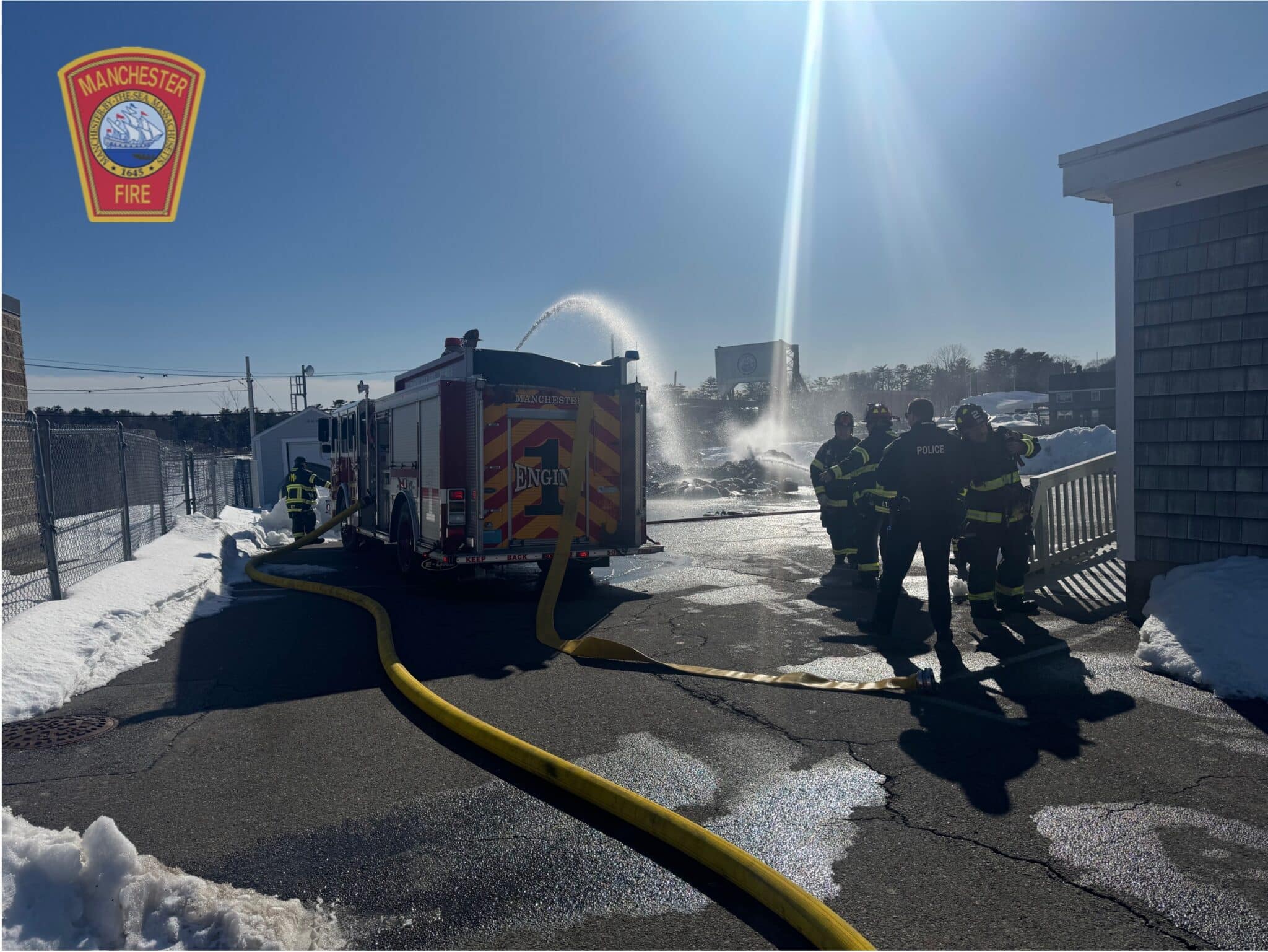 Manchester Fire’s Engine 1, Ladder 1, and Car 3 responded today to a fully loaded trash truck fire. Thanks to the quick thinking of the driver, he was able to recognize the problem immediately and drive to an empty parking lot where he safely dumped the load — actions that very likely saved the truck…