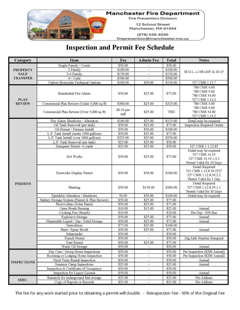New fees take effect on October 1, 2025. Download the Fire Department Permit Fees List.